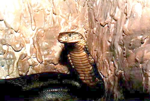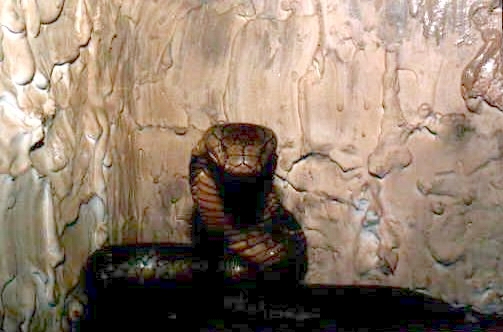 Sehr große Schlange (längste je gefangene maß 5,75 Meter, Durchschnittsgröße 3 4 Meter). Färbung bei alten Tieren recht einheitlich schwarzbraun. Bei jungen Tieren ist eine weiße Bänderung vorhanden, die jedoch mit dem Alter immer blasser wird. |