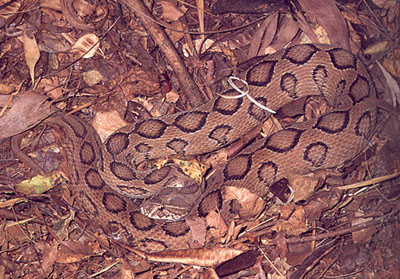 Verbreitung Nordosten Venezuelas, Maturin-Savanne bei Uracoa. Von ihrem wuchtigen Körper, welcher im Querschnitt dreieckig ist, setzt sich der ovale, eher längliche Kopf deutlich vom Hals ab. Weisse, grüngelbe oder auch rotbraune Muster bedecken die Oberseite des Kopfes.Die Uracoan -Klapperschlange erreicht eine länge von 0,70 - 1,20 Metern ,sie lebt in offenen, grasreichen Gelände und Gegenden mit niedrigem Dornengebüsch.Die Klapperschlange ist sehr ruhig und kaum aggressiv.Sie ernährt sich von Mäusen und ist lebendgebährend. | ||||||||||||||||||||||||||||||||||||||||||||||||||||||||||||||||||||||||||||||||||||||||||||||||||||