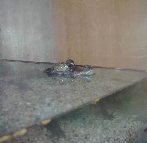 Der Brillenkaiman (Caiman crocodylus) ist ein Vertreter aus der Familie der Alligatoren , lebt in den Flüssen Mittel- und Südamerikas und ernährt sich von Fischen und Weichtieren. Er wird bis ca. 3 m lang. die meisten Exemplare werden allerdings nicht größer als 2,50 Meter. Wie alle Kaimanarten ist er Eierlegend.Den Namen Panzerechsen verdanken die Krokodile ihrem harten Schuppenpanzer, der besonders auf dem Rücken durch Knochenplatten verstärkt wird. Trotz ihres behäbigen Aussehens reagieren Krokodile extrem schnell. |